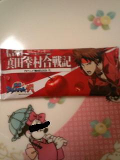 今日の戦利品。一番嬉しかったのはトーコねぇさんにとってもらった幸村の…布。タオル…じゃない。なんていうか、眼鏡ふきっぽいですが、ゲームでクリアしたら貰える景品です。私もゲームやったのですがダメダメで、写真下の蒼紅マイポ貰いました。ゲームが筆頭と幸村のどちらかを使って信長(か秀吉)を倒すゲームなんですが、何故か幸村でクリアすると筆頭が褒めてくれるんですよ。筆頭だとこじゅが出てくるのに。筆頭がこじゅなら佐助が出るんじゃないの?と思ったのですが、おそらくまたナニかしらあるのでしょう。大人のお姉さんにはわかりますよ。
